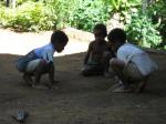 We got to Betelgut in the mid afternoon and the school kids just got out of school. Many of the young primary children were playing in the dirt yard. They were very entertained by the whiteskins in their village. 3 of the children were playing marbles on the dirt floor.