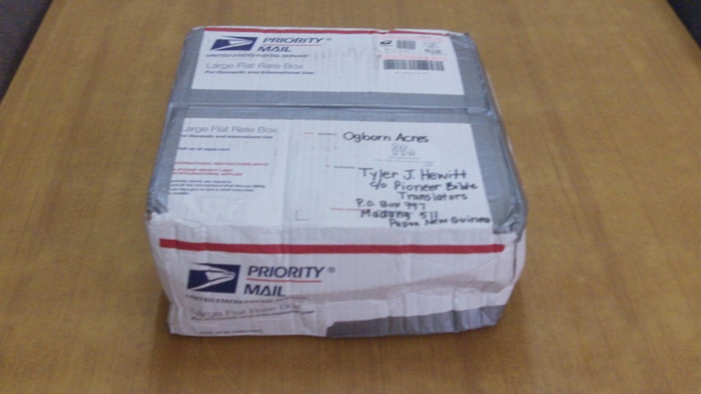 The excitement builds as I found a little yellow slip in the PO Box. Last Friday, I had this same excitement in anticipation of a care package I was expecting. However, it turned out to be for another team member. I checked the mail in the morning, and nothing there. I went back little after 3 PM to check, and I found a little yellow slip, could this be for me? Sure enough, as I signed the release paper my name was on the paper. It was for Tyler Jon Hewitt. I told the clerk, ‘dispela bilong mi.’