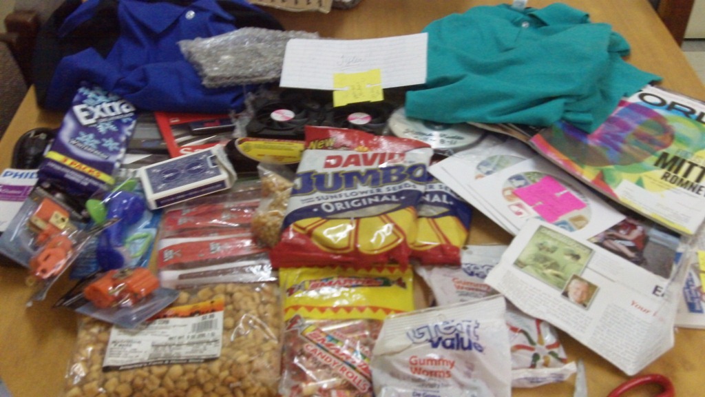 As I opened the package I see it was stuffed with the recent local newspaper, a hand written letter from my sister, and many good candies. Gummy worms, sweethearts, popcorn, slim-jims, summer sausage, plus more. I am surprised some of it made it through customs. (Note: Duct Tape is an awesome deterrent)![]()